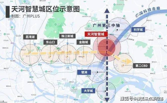 位于天河智慧城核心区域,南靠珠江新城,东临黄埔科学城,是名副其实的天河芯地段。与珠江新城中央商务区形成南北遥相呼应的 “双核驱动” 格局,被誉为广州的未来发展引擎和创新中心。该区域距离珠江新城直线距离仅约 10km,是广州 “十三五” 重点规划项目。
