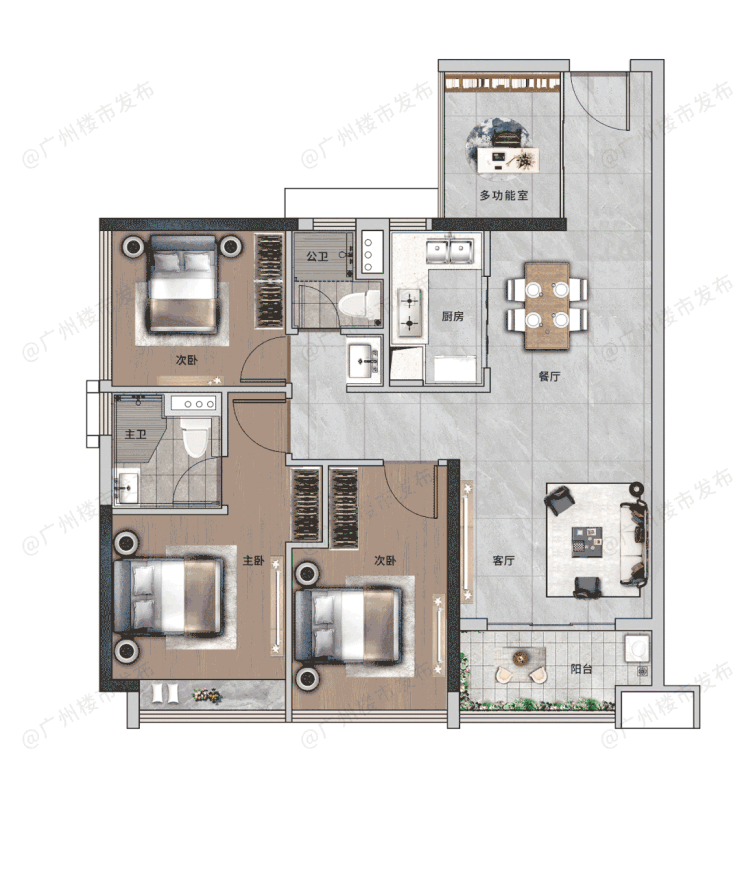 在产品设计方面,品实·云湖花城建面约70-141㎡三至五房,能多得一间房。