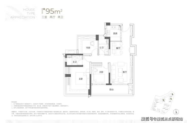 建面约95㎡3房2卫