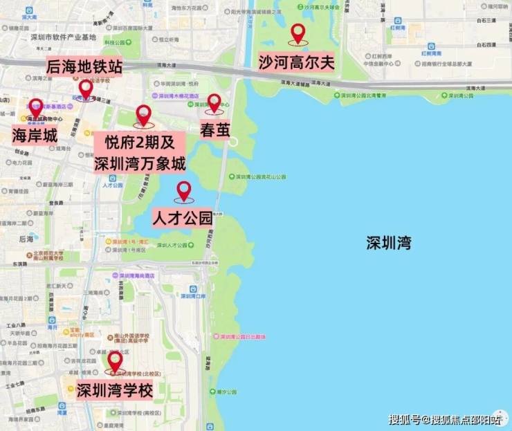 <自驾>:周边分布有多条高速/快速路及区域主干道,如西侧是后海大道,北侧是滨海大道、南侧是东滨隧道,去往南山科技园13分钟,去往前海、福田、宝中大概在15-20分钟