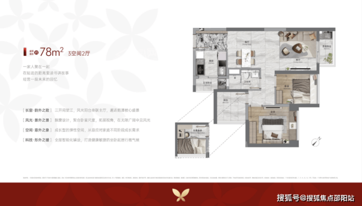 新世界天馥总价29X万起,上车门槛相对较低,对于想要在核心区域置业的家庭来说,这样的价格具有一定的吸引力。天馥主推的76-108㎡「超新规」阔景户型和126-139㎡270°环幕江景大平层,在空间利用率上表现出色。传统户型中,小面积房源往往难以实现多居室设计,而这里的78㎡能做到三房望江,98㎡能做到四房双卫,充分满足了家庭对空间的需求。