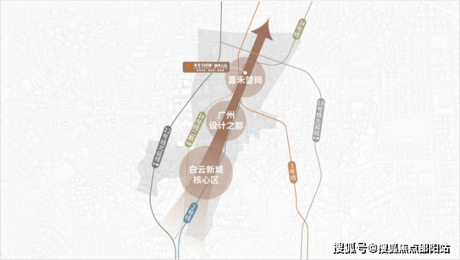 项目位于白云新城嘉禾望岗商务核心区,依托嘉禾望岗地铁站,形成了以TOD(Transit-Oriented Development)为导向的城市综合开发示范区。该区域通过圈层式布局城市功能,将枢纽与城市紧密结合,形成片区中心,实现交通便捷性和生活便利性的完美结合。