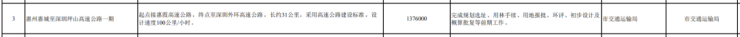 当中,惠州惠城至深圳坪山高速公路一期、惠州机场高速及东延线、深惠城际坪地至沥林北段、惠大铁路市域化(客运功能)、湖山大桥、石洲大桥重建等项目出现在前期预备计划中,均在今年开展前期工作。