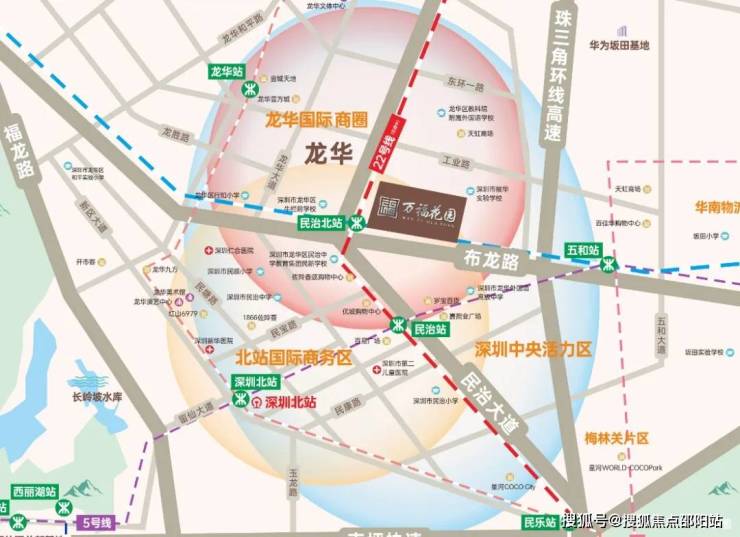 距离深圳北站近约2.5公里,同时,又位于龙华国际商圈内,依托时代发展,板块迅速崛起,未来价值不可估量;