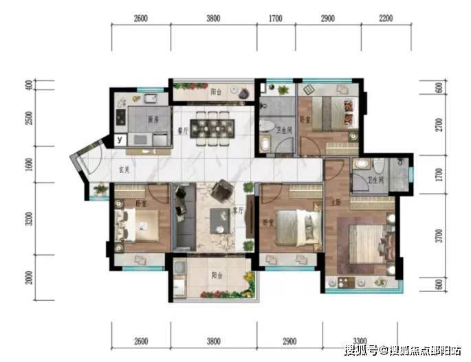 『南北通透双阳台 南向四开间』:118㎡户型 四房两厅两卫