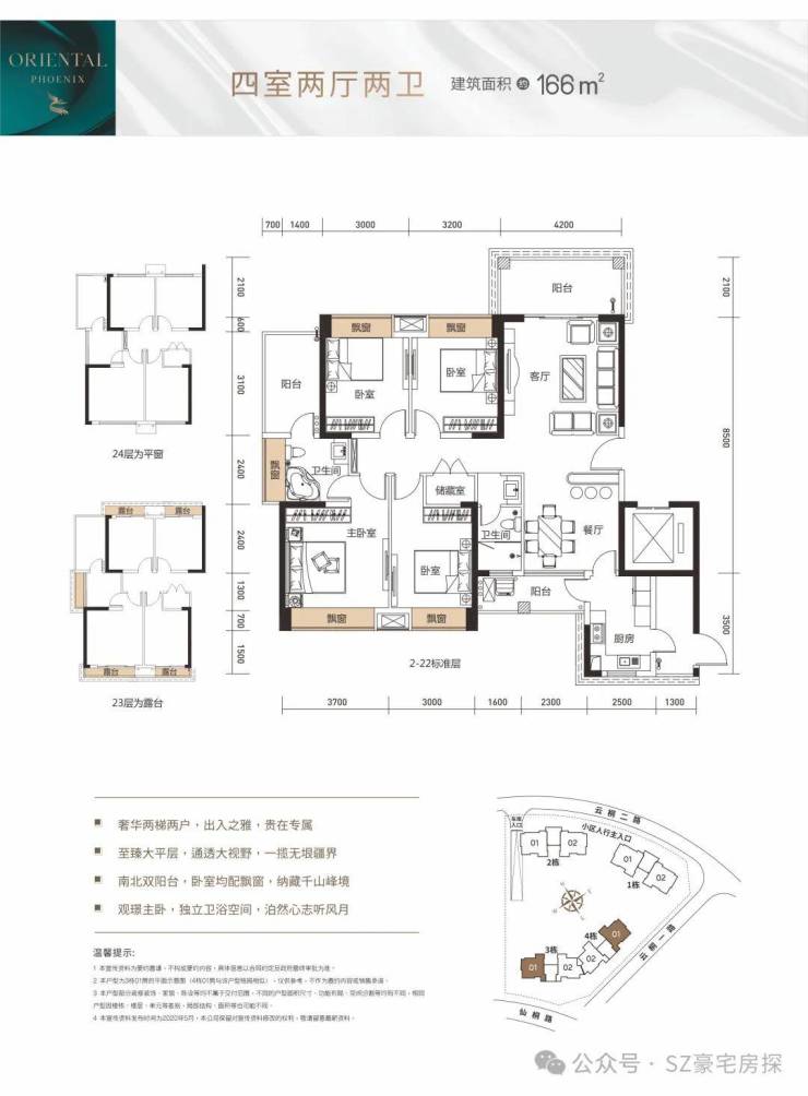 项目依傍梧桐半山,约166-188㎡四房大宅,三梯两户。纯板式结构,南北通透接纳更多梧桐绿意。