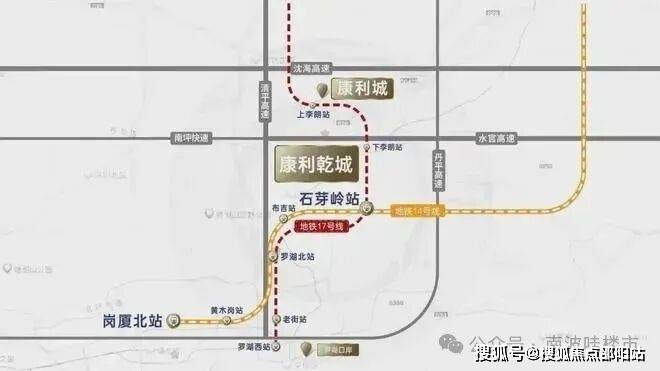 康利乾城属 14、17 号线双线交汇的地铁上盖物业,周边有 3 条高速、2 条快速路,交通便捷。