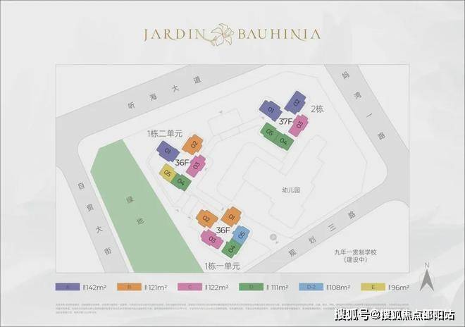 湾啟紫荆府,由招商集团打造,总占地面积约1.49万㎡,总建筑面积约10.6万㎡,计容建筑面积约6.68万㎡,容积率4.47,绿化率30.01%,共规划3栋总高36-37层住宅,其中1栋1单元/2单元住宅36F,2栋住宅37F,还配建有1所18班幼儿园。总规划485户,全部都是商品房住宅,4梯5户,地下室有2层,规划停车位597个, 车位占比1:1.23。