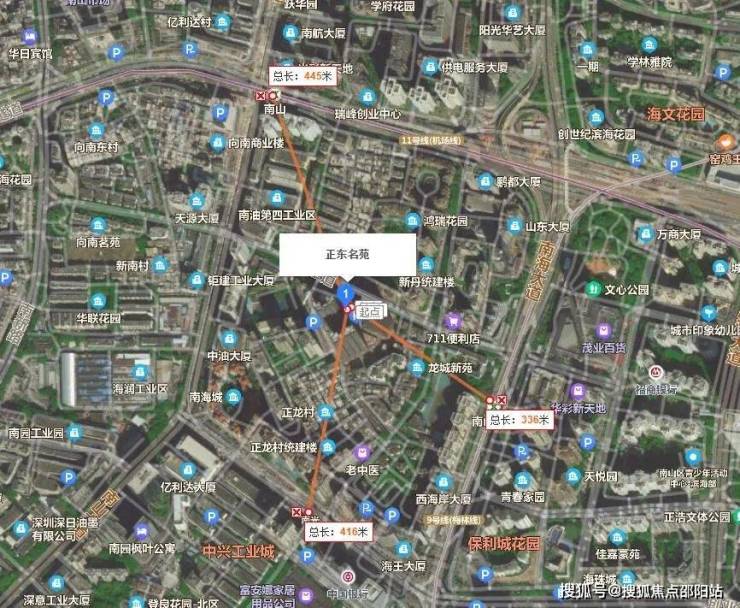 正东名苑原为南光村旧改,由深圳市阳光华艺地产有限公司和南岗实业联合开发。项目位于南山区南山大道东,海德二道南侧,在地铁11号线南山站和地铁9号线南山书城站之间,距离最近的是9号线的南山书城站,步行约300多米,其次是在建的12号线站点南光站,步行约400多米,可见项目轨道出行非常方便。