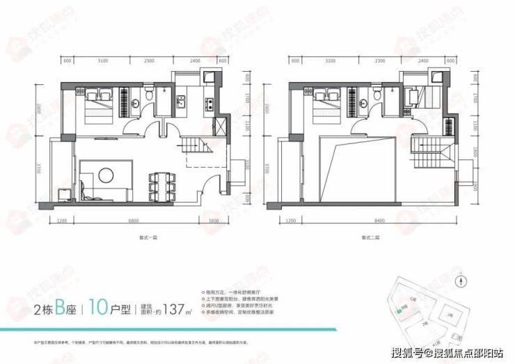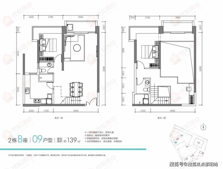 复式产品2栋B座,共有10总该户型建面可选,面积段主要在129㎡、130㎡、137㎡、139㎡、143㎡。目前公示的户型主要有129㎡、130㎡、137㎡、139㎡。
