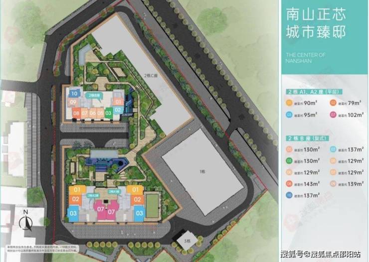 平层产品主要位于2栋A1、A2座,户型建面有79㎡、90㎡、95㎡、102㎡单位。目前公示的户型图是79㎡2房1卫和90㎡3房1卫户型。