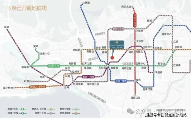 楼盘距离最近的地铁站是9号线香梅站和1号线香蜜湖站,地铁1号线香蜜1站车公庙,2站福田中心,3站后海深圳湾,项目离9号线香梅站300米,步行5分钟,1号线香蜜湖站500米,步行8分钟。