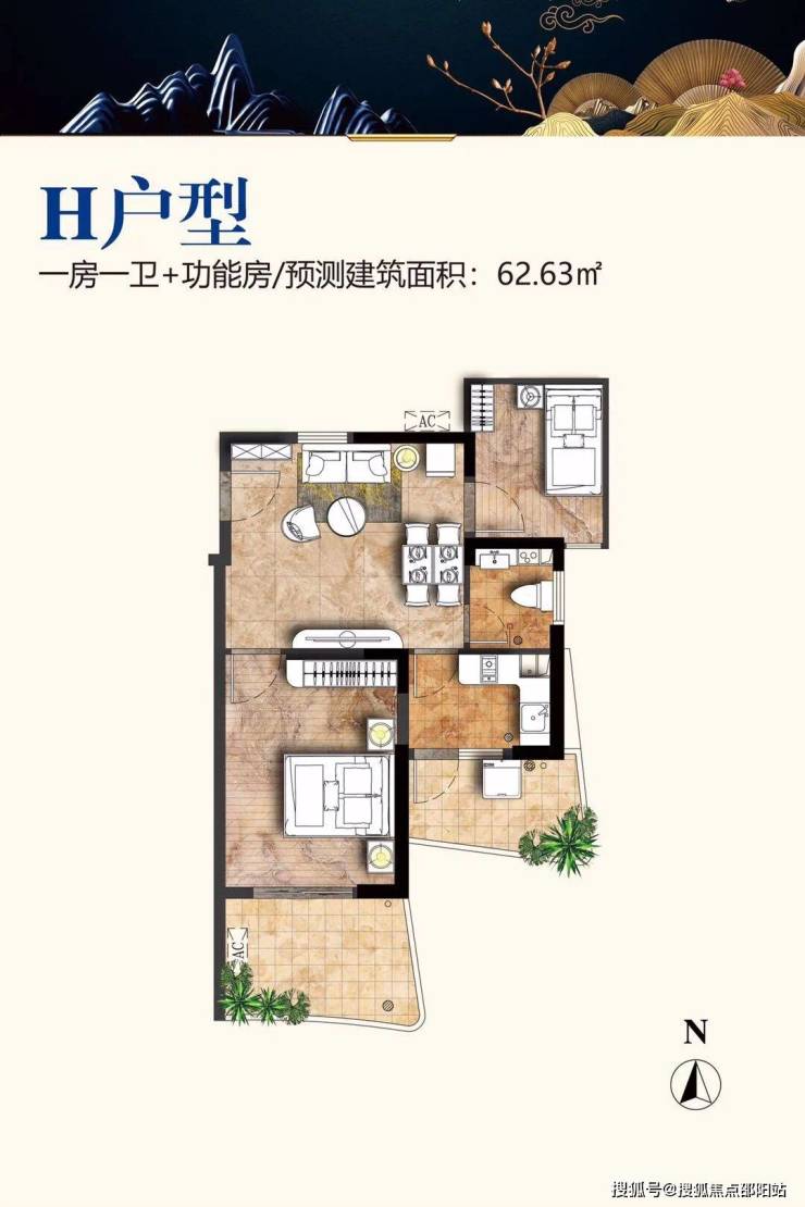 两梯六户,超大落地观景阳台,采光充足,户型通透