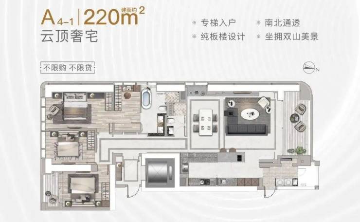 160-220㎡ 2-3+1房(专梯入户)
