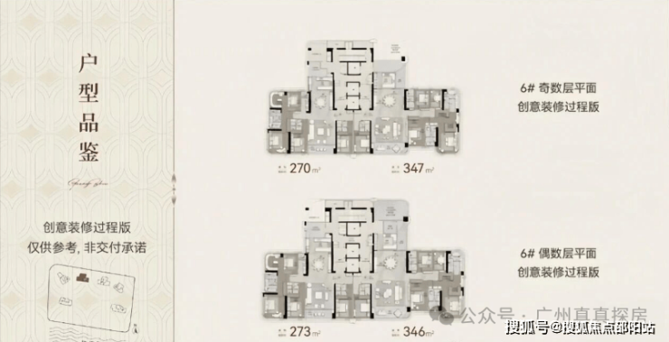 270/273㎡户型特点: 一层两户,3T2户独立梯厅互不扰; ·5.7*11.65m直厅宽敞大气; ·客厅、阳台、众数套房可正南望江及 琶洲会展; ·南北对流双阳台; ·工人梯独立动线,保障豪宅私密性; ·主卧270°景观转角飘窗; ·800mm飘窗可打; ·奇数层32㎡6.6m通高平台空间;