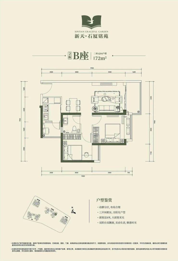 🔺2栋B座二单元04、05户型:面积约为72-74㎡的2房2厅1卫。
