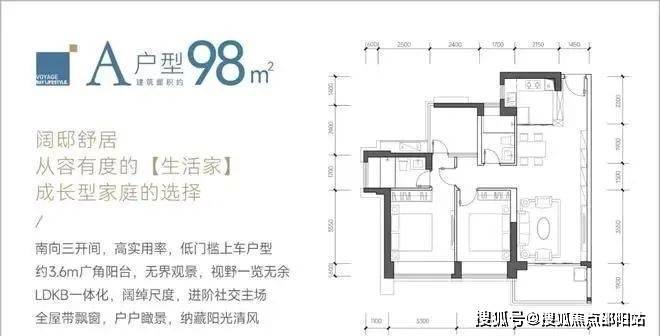 98㎡的3房2厅2卫(A户型,分布在1/5/6A/6B栋03/04户型,朝东南和西南向)