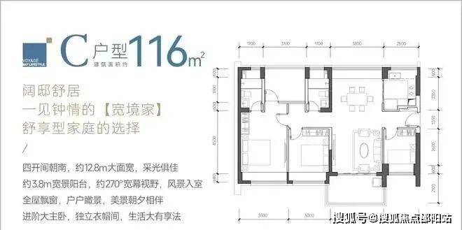 116㎡的4房2厅2卫(C户型,分布在1/6B栋01户型,5/6A栋02户型,朝东南和西南向)
