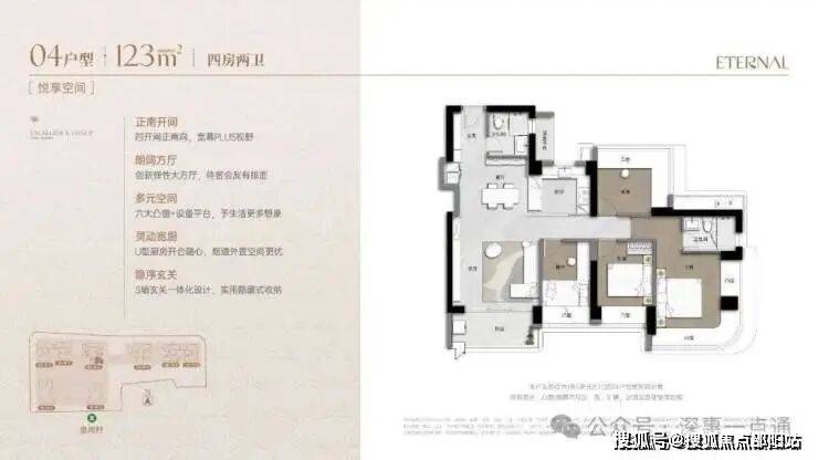 新规产品,销售使用率90%+,近1:1梯户比,大户型双电梯独立电梯厅入户,北区2梯2户,双电梯独立电梯厅入户,南区3梯4户。