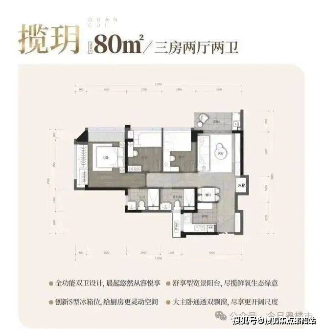 在产品方面,打造建面约80-110㎡超高得房率的3-4房产品,有多面宽、大阳台等户型优势;以及配置全屋中央空调,品质交付。