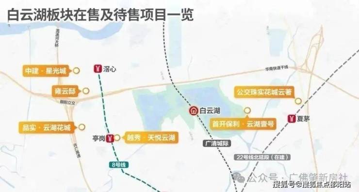 (品实云湖花城、越秀天悦云湖、招商电建雍云邸、中建星光城、首开保利云湖壹号、公交珠实花城云著)