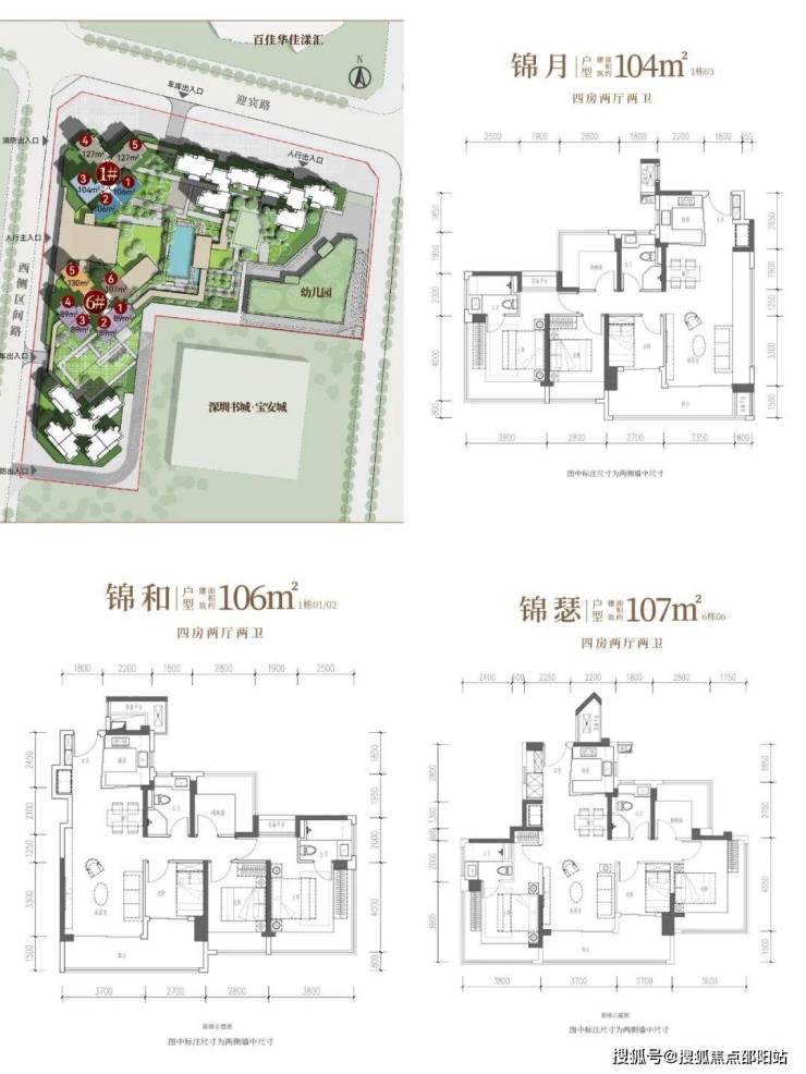 作为宝安首个严格按深圳“建筑新规”设计的楼盘,绿城锦和玉鸣总占地面积约1.9万平方米,总建筑面积约5.97万平方米,容积率仅3.1,建筑限高80米,规划由5栋16-25层的小高层住宅围合而成,总户数462套,全部为纯商品房,配备530个停车位,车位比约1:1.15-6-7。项目户型设计上亮点纷呈——89㎡三房两厅两卫采用竖厅经典格局,三开间朝南,配备约11.46㎡阔景阳台,主卧带270°无柱转角飘窗,折后总价约375-406万元;104-107㎡四房两厅两卫实现了四开间朝南布局,得房率高达100.71%,折后总价约466-529万元;127-130㎡四房两厅两卫则为横厅南北通透格局,搭配约6.8米阔景阳台,折后总价约590-644万元-4-6。