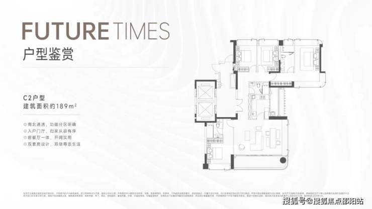 210平户型是双套房设计,配270度的景观大阳台,功能区动静分离。