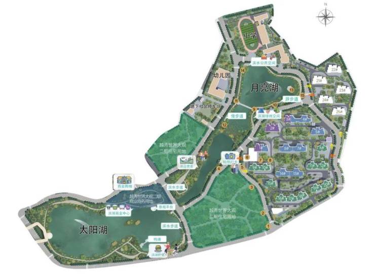 大观公园滨湖商业街:5块商业用地,未来打造成情景商业、滨湖商业、滨湖艺术街区。