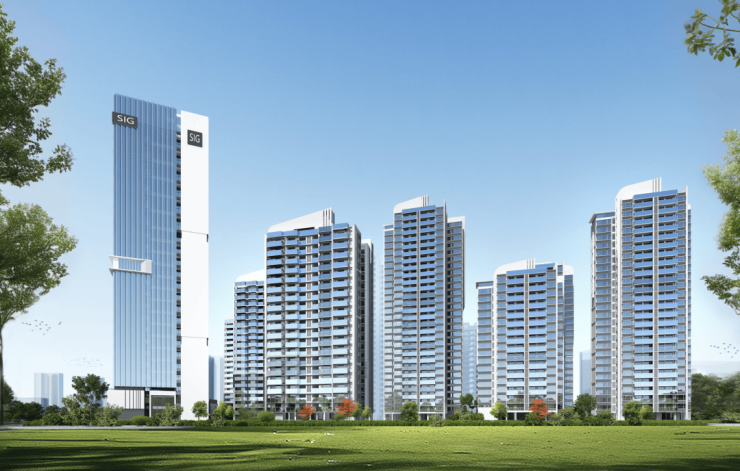 总建筑⾯积19.89万平⽅⽶共建18栋楼宇,包括地下⼀层,地上两栋23层公寓、两栋20层公寓、⼀栋18层公寓、⼀栋8层商业办公楼、五栋17层住宅楼、两栋29层住宅楼、⼀栋23层住宅楼和⼀栋26层住宅楼。