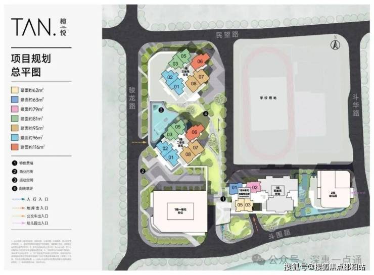 檀悦府,项目原先是水斗新围山嘴头工业区城市更新,总占地面积约1.6万㎡,总建筑面积约19万㎡,计容建筑面积约14.1万㎡,容积率8.3,绿化率40.12%,共由4栋32-47层高住宅+1栋33层办公组成,其中1栋1单元办公33F,1栋2/3单元商品房47F,1栋4单元住宅32F,1栋5单元住宅46F,2栋配建1所6班制幼儿园。