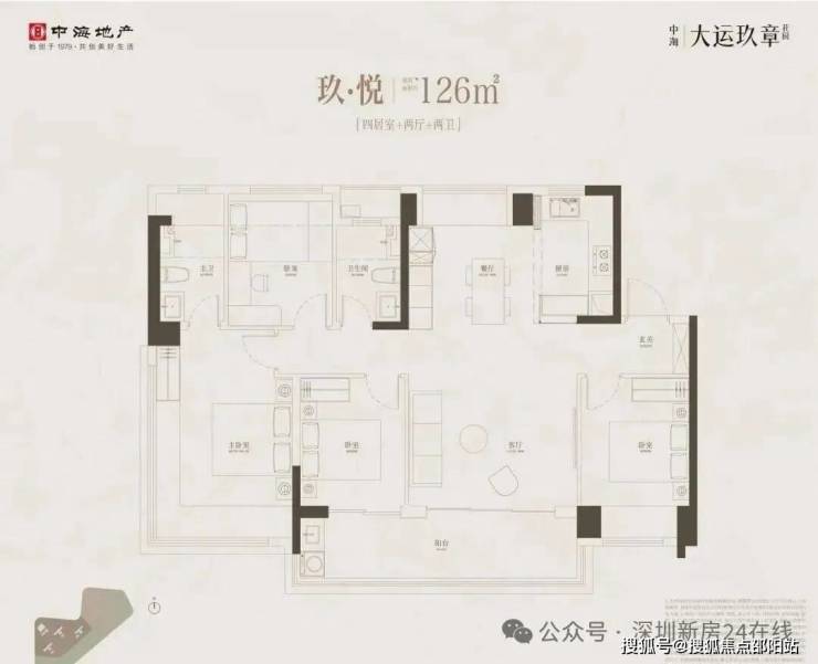 126㎡4房2卫(玖章王炸户型):4.72-4.98万/㎡,总价598-631万,用大运二环的价格买大运中心一环。