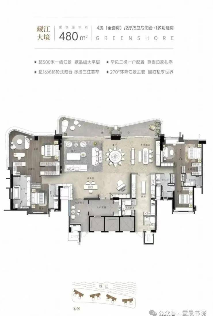 户型面积:140㎡-480㎡四房-六房双主套