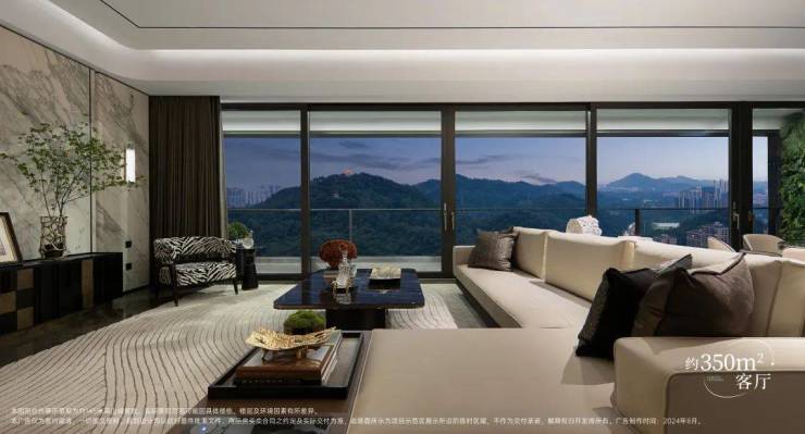 漫长的景观环线,赋予居者全方位的视觉盛宴。墙面线条规整,视野流畅无碍,居者的目光能自由穿梭于美景,如同置身空中会客厅。