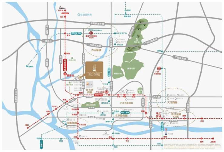 地铁8号线鹅掌坦站约680米,一站西村站换乘地铁5号线,三站到达陈家祠,出门即上西湾路,连接内环路,迅达市中心。