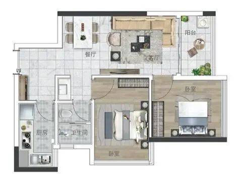 产品二:64㎡ 两房两厅一卫