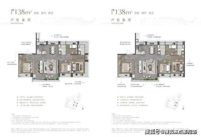 4栋主推建面约138㎡4房2厅2卫南北通透板楼户型,该户型是项目首次推出的改善型大平层产品,具有以下特点: