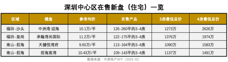壹地产梳理深圳中心区现有在售新房发现,3房总价最低1000万+,800万以下几乎断层;4房总价最低1491万,最高去到2000+万。