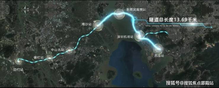 深江铁路全线共设7座车站,贯通5座城市,从深圳枢纽西丽站引出,经深圳宝安、东莞滨海湾、广州南沙、中山至江门,全长116公里,施工周期5.5年(不包括先开段)。