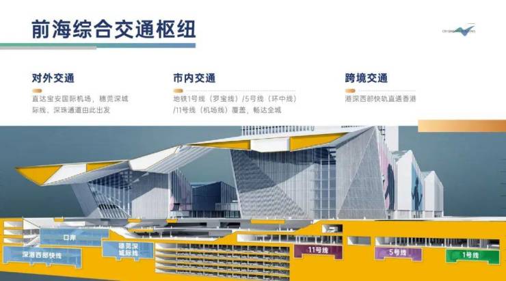 1.前海综合交通枢纽,地下商业与1号线鲤鱼门站、5号线桂湾站无缝接驳,瞬间抵达目的地,11号线直达宝安国际机场。