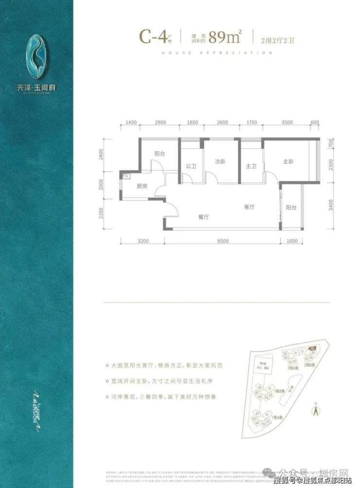 V型塔楼布局,南向阳光户型,约80%高实用率,双阳台,光明罕有绝版户型。建面约80-143㎡河岸美宅,赠送高标准绿建简装,向往的生活在这里触手可及。