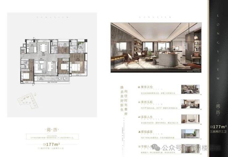 建面177-182㎡四房三卫,三开间朝南,开间达到6米,餐客厅面积达到50平,16米长的270度转角大阳台,大主卧带10米转角飘窗,总价920万起。