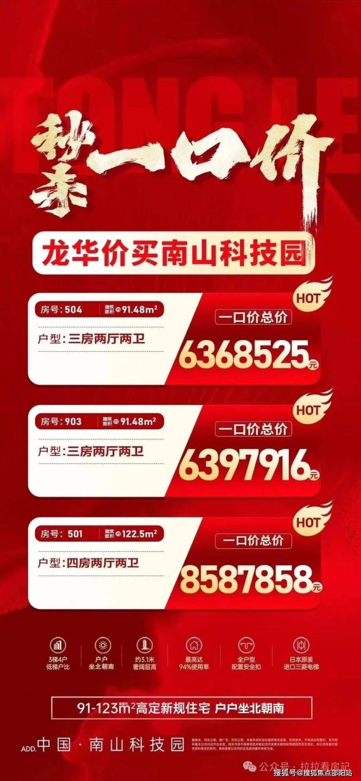位于同乐板块「同乐公馆」已开盘,推出面积91-113-123㎡3至4房,39层单体楼,层高3.1米,3T4户。