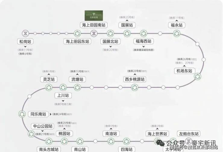 从项目出发,直线距离12号线海上田园南站A出口约100米,1站到国展北可换乘20号线,5站到福永可换乘11号地铁线。