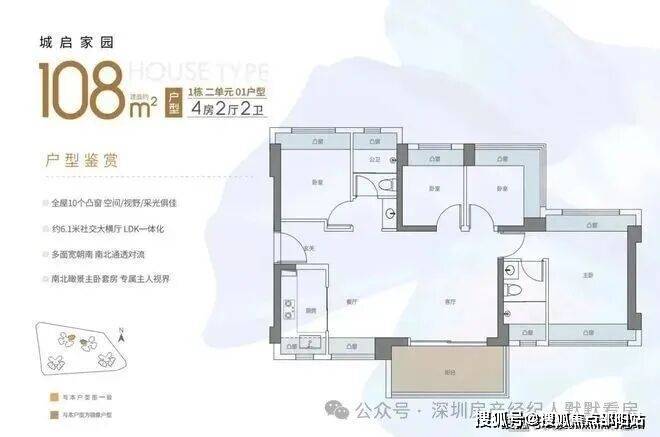 本次推售的是城铭家园,总占地面积约1.92万㎡,总建筑面积约17.06万㎡,溶剂率6.24,绿化率40%,共由4栋47层高的住宅组城。