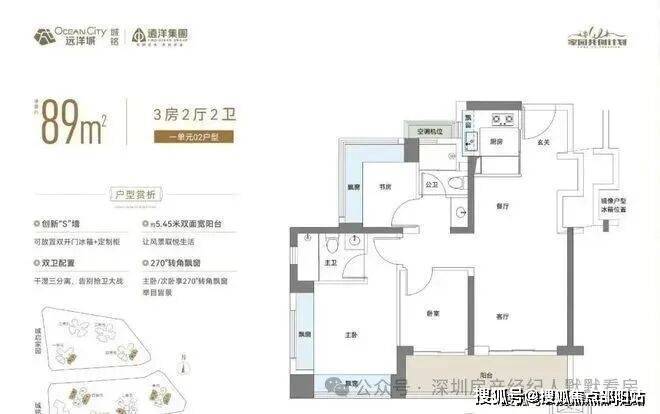 •主推产品:约89㎡三房两卫、约120㎡四房两卫