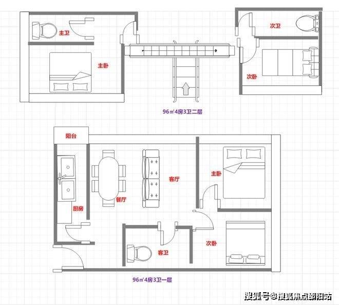 96㎡4房3卫