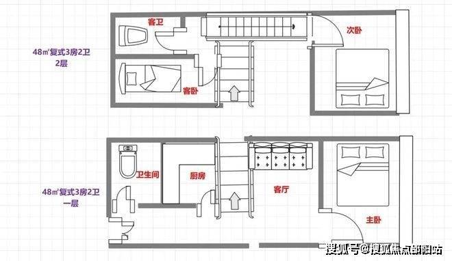 48㎡㎡3房2卫