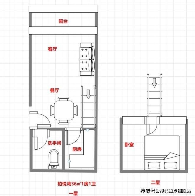 36㎡1房2庁1卫户型图