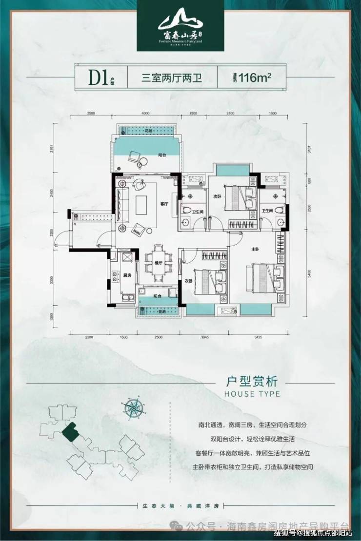 建面约105-116 m² 南北通透三房