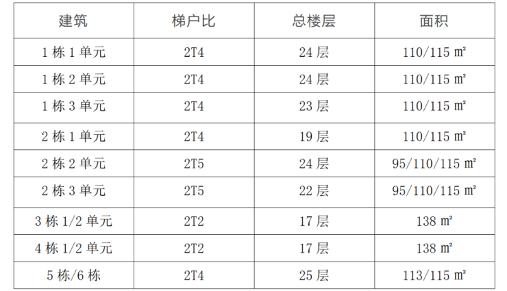 1栋1/2单元住宅24F,1栋3单元住宅23F